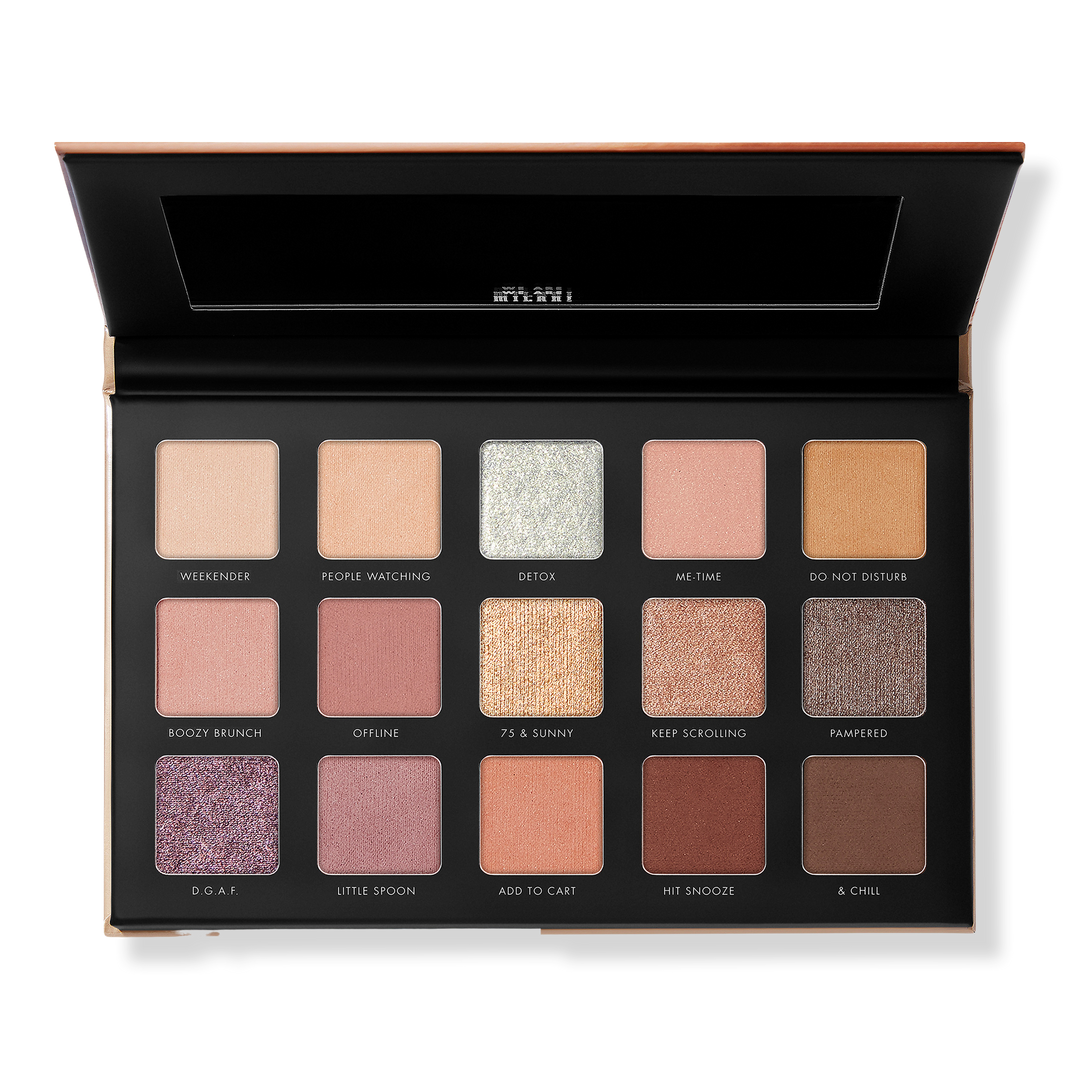 Milani Gilded Nude Eyeshadow Palette takes nudes to the next level with 15 hyper-pigmented shadows in crush-worthy mattes, shimmering pinks and chocolatey browns.