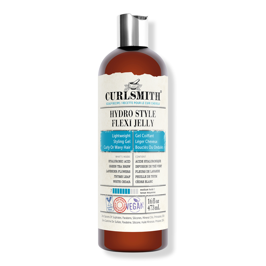 Curlsmith Hydro Style Flexi Jelly is a medium hold styling gel that provides weightless definition and volume while minimizing scalp build-up for all curls.