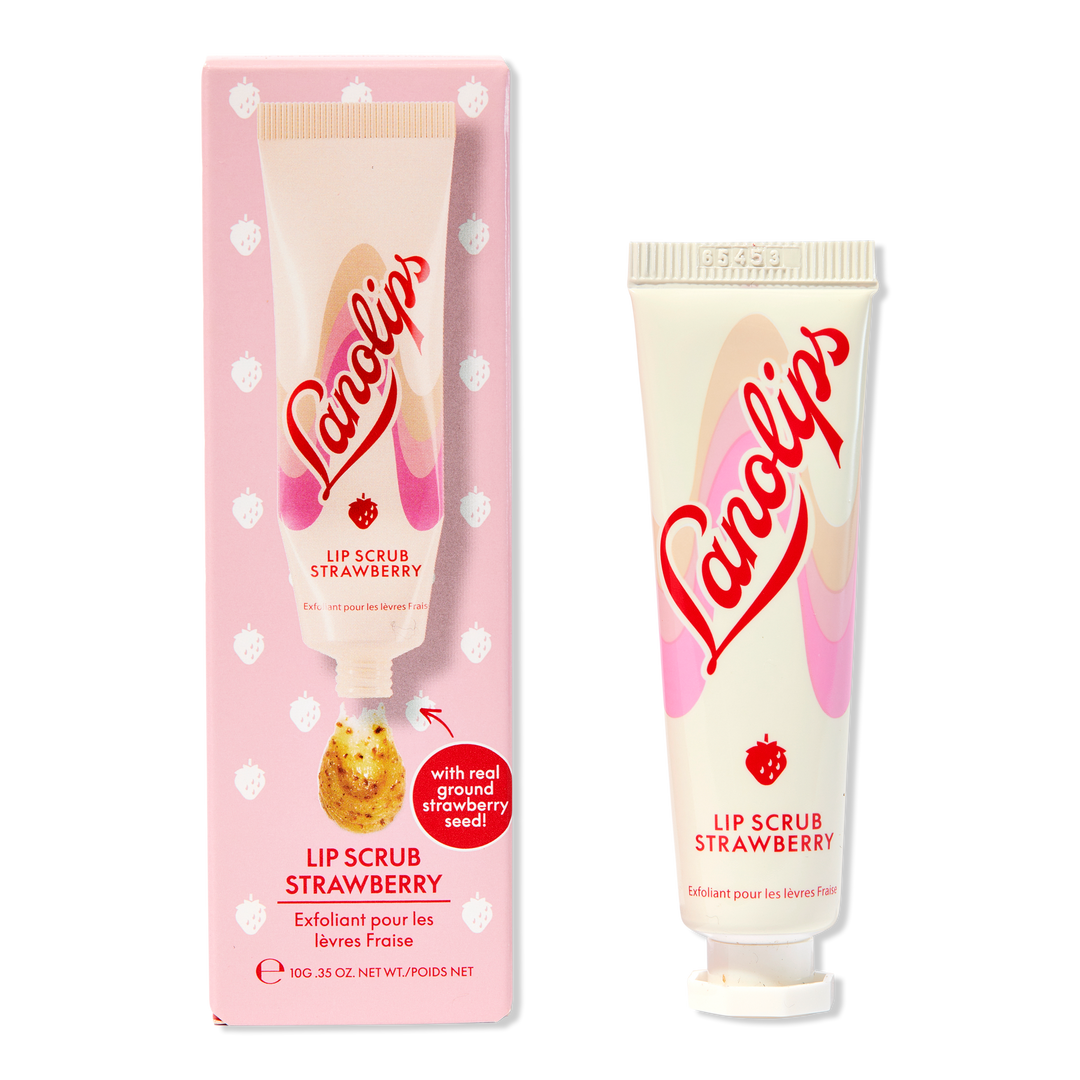 Lanolips new Lip Scrub Strawberry has a rich hydrating lanolin base, natural fruit extracts and natural sugar which will gently dissolve dead skin flakes and then hydrate the lips for a perfectly, silky smooth lip base.