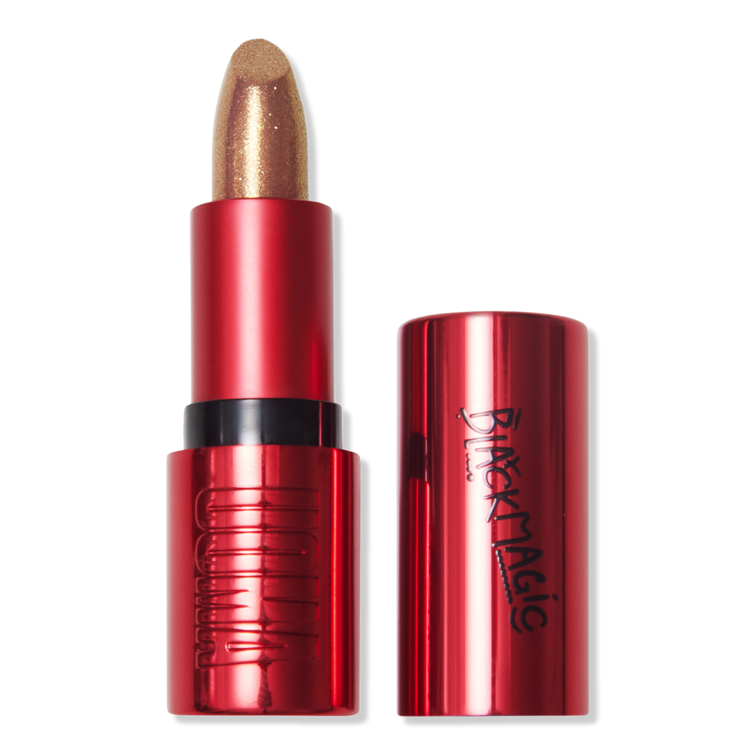 Leave them spellbound with UOMA's High-Shine formula! Black Magic Hypnotic Impact High Shine Lipstick is like gloss in a lipstick form. Glossy shades wash the lips with color and give them a reflective sheen. Amplify your lips with a buildable wash of color and rave worthy shine.