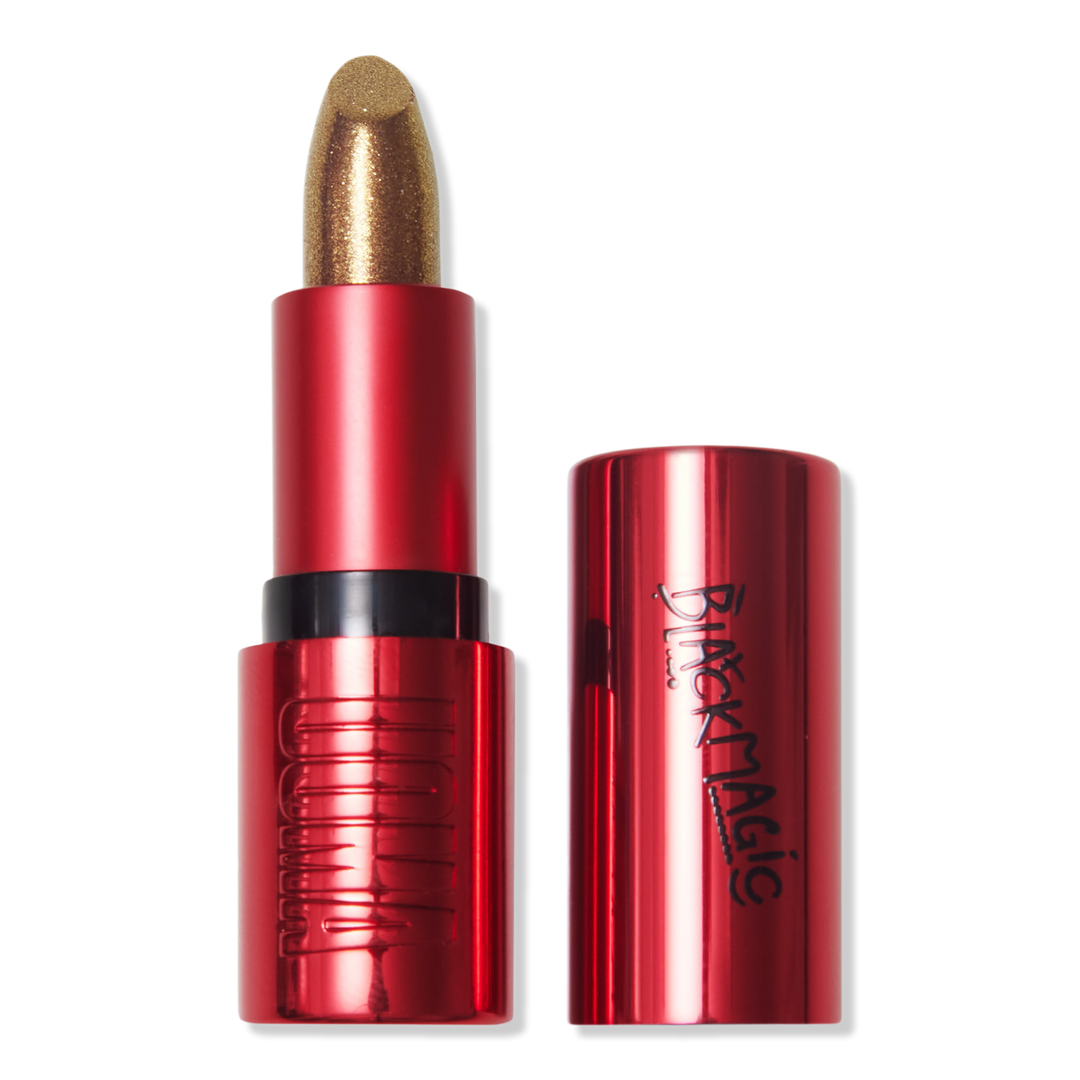 Leave them spellbound with UOMA's High-Shine formula! Black Magic Hypnotic Impact High Shine Lipstick is like gloss in a lipstick form. Glossy shades wash the lips with color and give them a reflective sheen. Amplify your lips with a buildable wash of color and rave worthy shine.